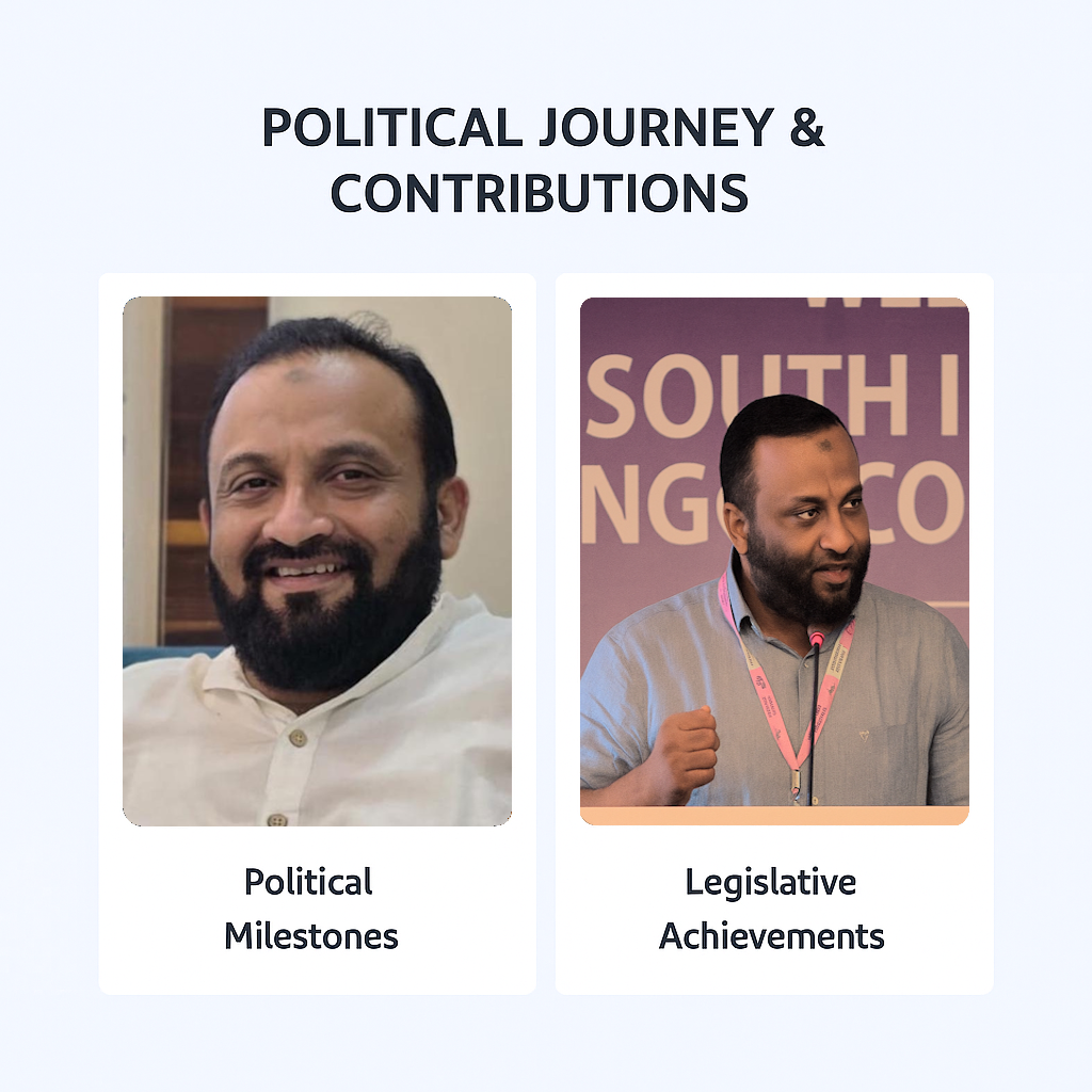 Hares Siddiqui is a dynamic politician, public orator, socially committed leader, software engineer and a proud inheritor of a distinguished political legacy. With a background in engineering and deep roots in public service, he has consistently championed the causes of education, minority welfare, and grassroots empowerment. As the son of Late Abdus Samad Siddiqui (former MP, Rajya Sabha) and nephew of Late Nazeer Ahmed Siddiqui (former MLA and Minister, Govt. of Karnataka), public service runs in his blood.
